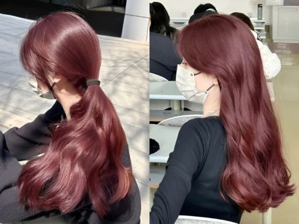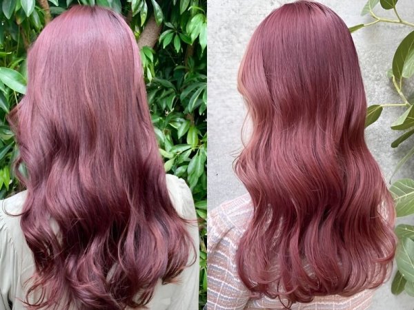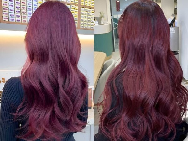 Tóc màu đỏ rượu ánh tím (Nguồn: linktr.ee, tete) Nhuộm tóc màu đỏ rượu ánh tím (Nguồn: beauty.yahoo.co.jp)Tóc màu đỏ rượu ánh cam
