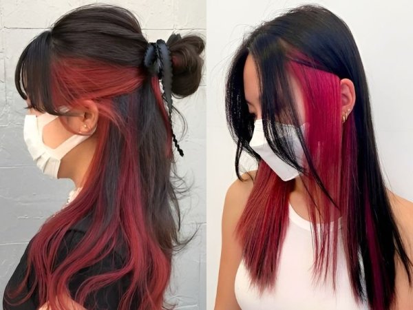 Bạn có thể khéo léo nhuộm tóc màu đỏ rượu phối với nền tóc đen tự nhiên giúp tạo nên tổng thể đẹp mắt, ấn tượng. Sử dụng các sắc độ đỏ rượu khác nhau sẽ tạo nên hiệu ứng màu tóc bắt mắt, hợp thời trang.