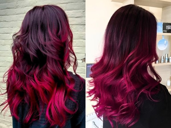 Tóc đỏ rượu ánh tím nhuộm ombre đẹp mắt (Nguồn: wattpad.com, lovehairstyles.com) Tóc đỏ rượu sáng nhuộm ombre (Nguồn: basehairstudio.com, hairstylecamp.com)Những lưu ý về cách chăm sóc tóc nhuộm màu đỏ rượu