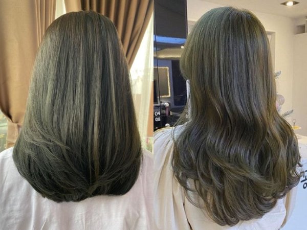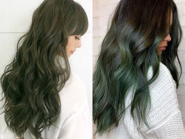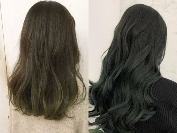 Đây là sự kết hợp của màu than chì và một chút sắc xanh rêu (Nguồn: xaydungso, thxombang.edu.vn) Màu tóc xanh rêu than có khả năng làm sáng da hiệu quả (Nguồn: number76.com, Luxe Studio)Màu xanh rêu sáng