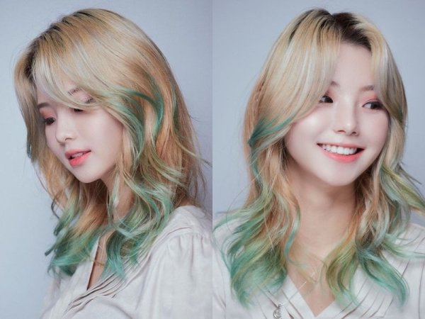 Màu tóc xanh rêu ánh vàng phai khá nhanh (Nguồn: donalovehair.com)Màu xanh rêu khói trầm