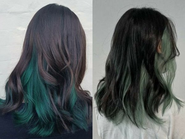 Nhuộm hidden sẽ không cần thường xuyên chấm chân tóc (Nguồn: LOVELIN) Kiểu nhuộm hidden hợp với những bạn yêu thích màu xanh rêu nhưng lại không muốn quá nổi bật (Nguồn: fashionisers.com , Hair R – Pinterest)Tóc xanh rêu nhuộm ombre