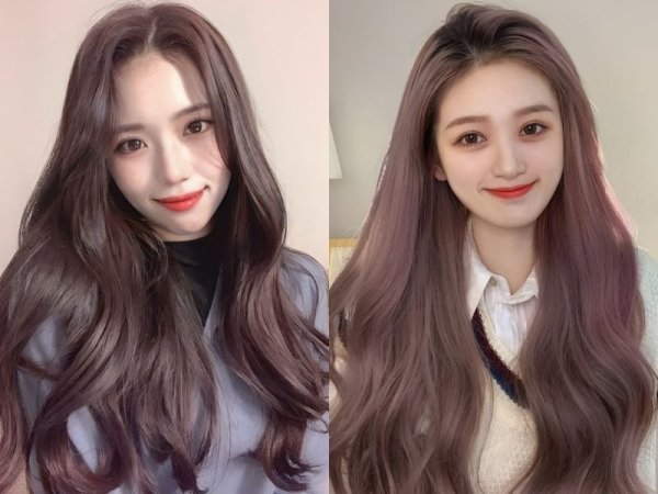 Tone màu nhuộm sắc nâu ánh hồng cực kỳ cuốn hút cho phái nữ (Nguồn: voh.com.vn, weibo wh1te) Tone màu giúp bật tông da cực kỳ hiệu quả (Nguồn: CHAHONG Salon, Nicole Tong)Nâu trầm khói