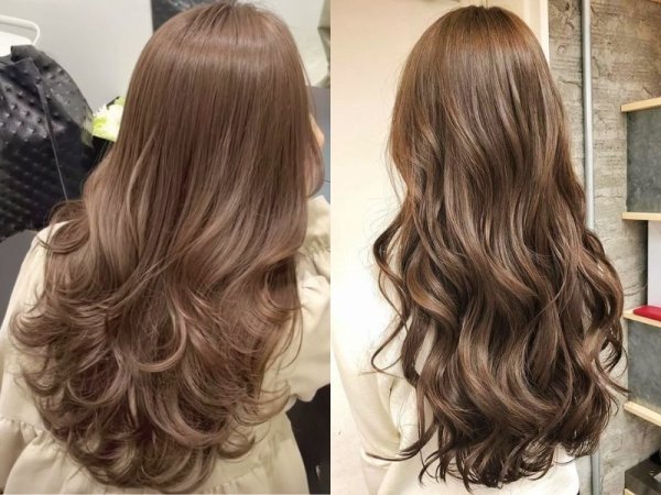 Tóc nâu socola ánh tím có sắc tím nhẹ, trầm, không quá kén tông da (Nguồn: vieautumn/hairbook.jp) Những kiểu tóc uốn tự nhiên, uốn xoăn nhẹ nhàng là sự lựa chọn phù hợp cho màu tóc nâu này (Nguồn: HAUM/kbeautaddiction)Tóc màu nâu socola ánh đồng