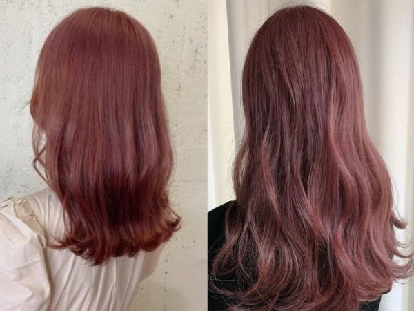 Màu hồng đào có thể nhuộm ombre không cần tẩy tóc (Nguồn: 하움 – Pinterest/ 하움 – Pinterest) Nâu hồng đào có cần tẩy tóc không? Không cần vì đây là màu tóc nổi không cần tẩy (Nguồn: minimodel.jp/natoli.vn)Màu nâu hồng trà không cần tẩy