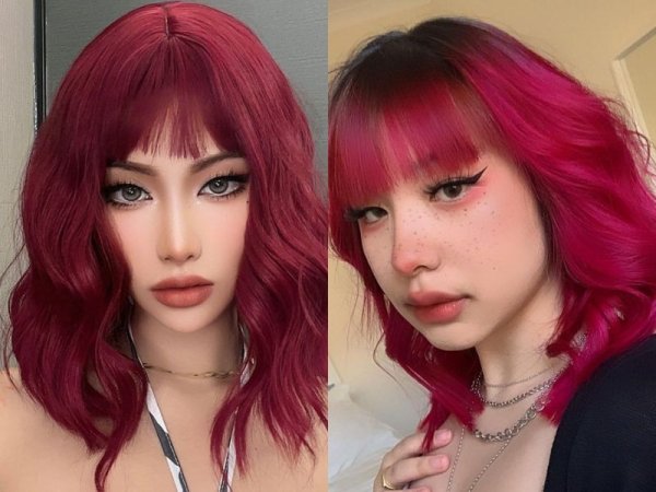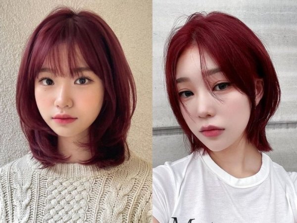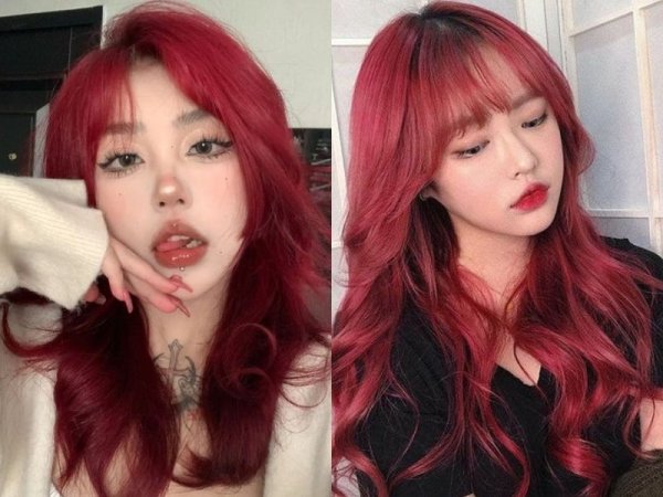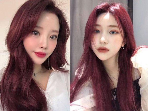 Màu tóc không cần tẩy đỏ cherry thể hiện cá tính và dấu ấn cá nhân một cách mạnh mẽ (Nguồn: biggo.com/Igor – Pinterest) Đỏ cherry là một màu tóc đẹp không cần tẩy nổi bật (Nguồn: fromis_9 – Seoyeon 190609/ Happy Virus – Pinterest)Màu đỏ dâu