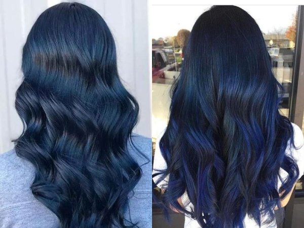 Màu xanh đen là màu tóc không cần tẩy có khả năng biến hóa đa dạng tùy theo môi trường. Trong bóng tối, màu tóc này cũng tương tự với màu đen, thế nhưng mái tóc sẽ ngay lập tức trở thành màu xanh nổi bật khi ánh sáng xuất hiện.