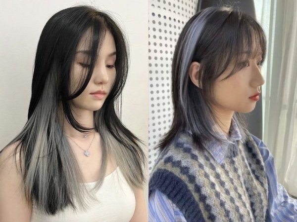 Xám khói là màu được yêu thích khi nhuộm highlight (Nguồn: Kbeauty Addiction) Màu xám khói highlight trên nền đen tạo nên sự tương phản ấn tượng (Nguồn: Ig:@planetstar1 – Pinterest/ @dphanh21103 – Pinterest)Tóc xám khói nữ đen