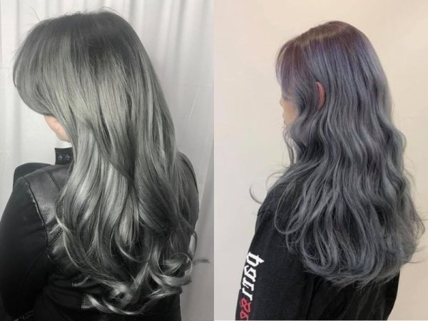 Xám khói ánh xanh trở thành hot trend nhờ đây là một màu tóc phá cách và độc đáo. Màu xám khói ánh xanh không chỉ nâng tông da mà còn giúp các bạn nữ hack tuổi, trở nên trẻ trung và năng động hơn. Khi ánh sáng chiếu vào, màu tóc của các bạn sẽ trở nên huyền bí và nổi bật. Các bạn có thể nhuộm màu ánh xanh với mọi kiểu tóc, trong đó có tóc ngang vai uốn sóng hoặc tóc mái thưa,…