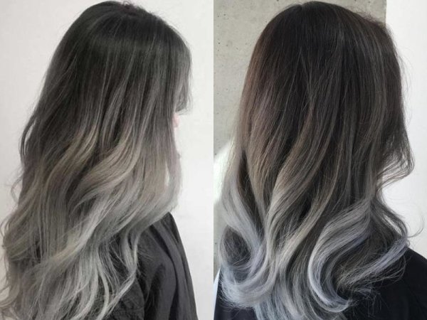 Xám khói sáng là màu xám đậm chất thơ (Nguồn: TheGreySpace – Pinterest) Xám khói sáng đặc biệt phù hợp với các bạn tóc dài (Nguồn: @JiaLinoooooo/ Meganobrienstyle – Pinterest)Tóc ombre xám khói