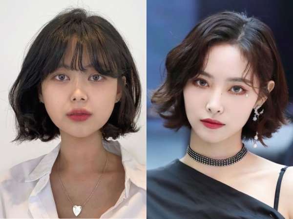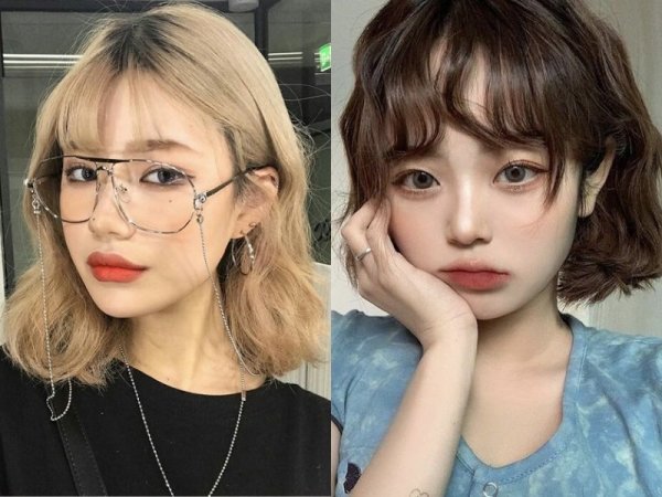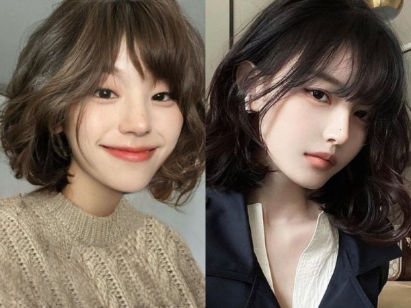 Tóc xù mì ngắn kết hợp mái thưa (Nguồn: 박솔이, voh – Pinterest) Tóc xù mì ngắn kết hợp mái thưa (Nguồn: chahongardor.com, hair.cm)Tóc xù mì kết hợp mái bằng