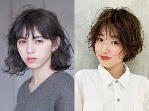 Tóc bob layer kết hợp xoăn xù mì (Nguồn: beauty-box.jp, Hairstyle – Pinterest) Tóc bob layer kết hợp xoăn xù mì (Nguồn: chahong.com)Tóc xoăn xù mì với mái dài
