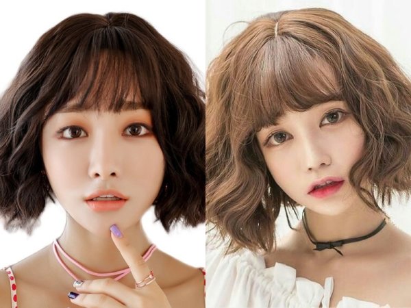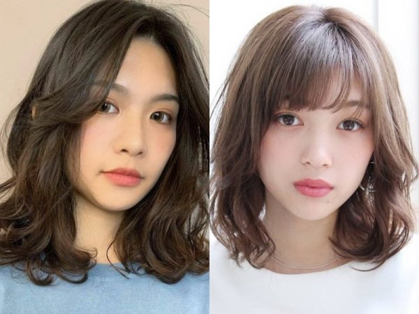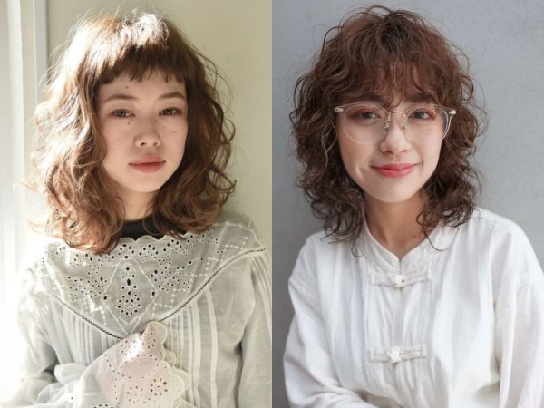 Tóc xoăn xù mì với mái dài (Nguồn: voh.com.vn, beauty.yahoo.co.jp) Tóc xoăn xù mì với mái dài (Nguồn: Dawson Chou, mei – Pinterest)Những lưu ý để giữ nếp cho tóc ngắn xù mì cho mặt tròn