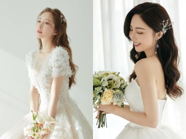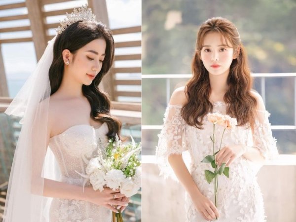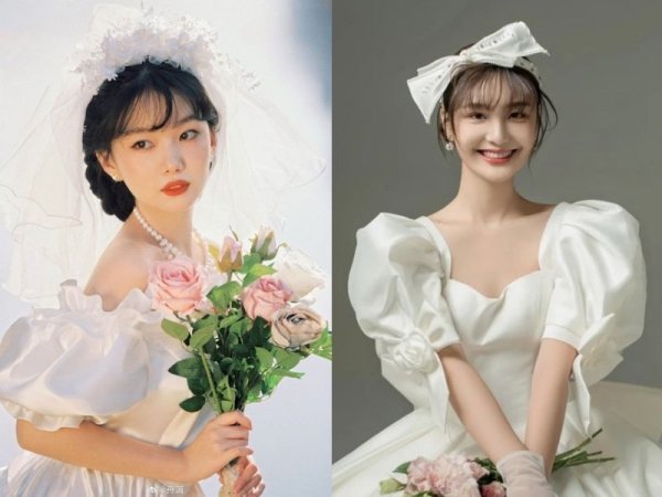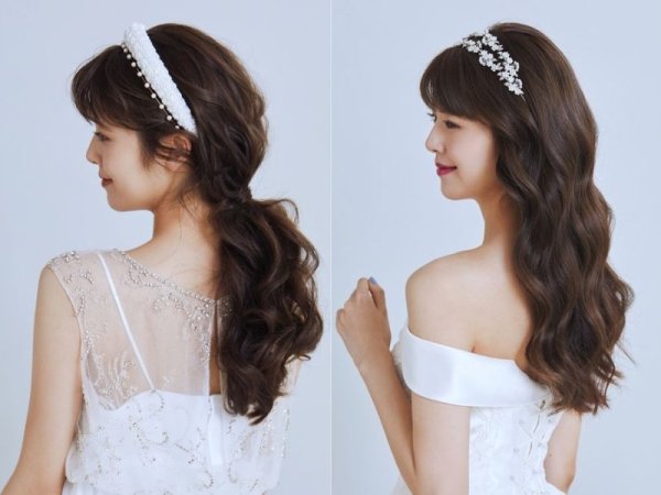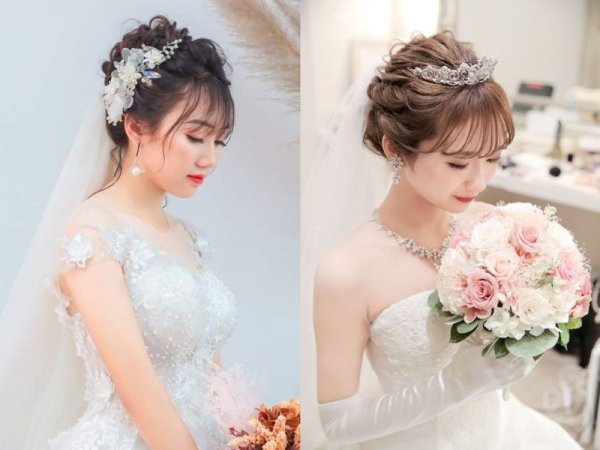 Kiểu tóc buộc nửa đầu đơn giản nhưng không kém phần nổi bật (Nguồn: Win’s Studio/mmqunh) Kết hợp với tóc mái bay và uốn gợn sóng vừa che khuyết điểm tốt, vừa tạo nên vẻ đẹp sang trọng, quý phái (Nguồn: hnglittle19p/sonsoo_yeonhee_)Kiểu tóc cô dâu mái thưa cho nàng trán cao