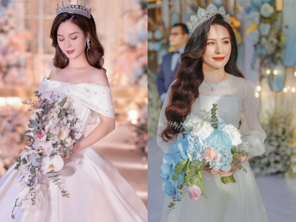 Mỗi cô dâu sẽ thật sự trở thành công chúa trong ngày cưới của mình với những kiểu tóc kết hợp vương miện vô cùng xa hoa, lộng lẫy. Bạn nên tạo kiểu tóc không quá phức tạp để giúp chiếc vương miện nổi bật hơn. Nếu búi tóc, các nàng có thể kết hợp thêm cài voan, còn nếu chọn kiểu uốn xoăn và xõa tự nhiên thì chỉ cần một chiếc vương miệng nhỏ cũng đủ giúp nàng nổi bật nhất.