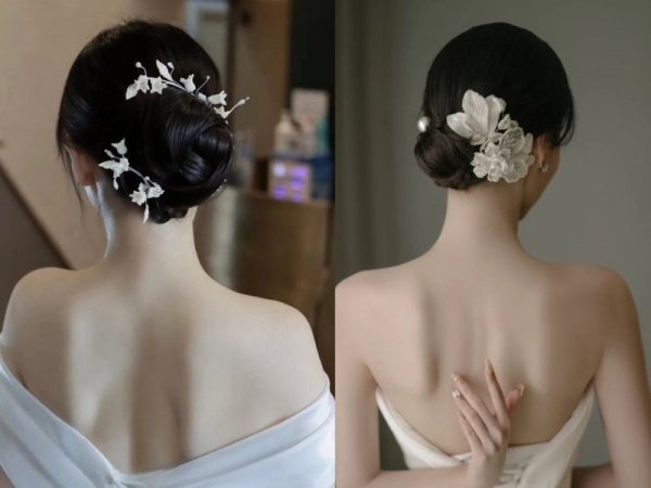 Kiểu tóc cô dâu đơn giản búi thấp đem đến cảm giác thanh lịch, nhẹ nhàng (Nguồn: moonnnnn1712) Kết hợp thêm cài hoa, nơ cùng lối makeup nhẹ nhàng sẽ tôn lên vẻ đẹp tự nhiên, ngọt ngào của cô dâu (Nguồn: moonnnnn1712/ChengRenshu712)Tóc cô dâu buộc nửa đầu cho nàng mặc áo dài
