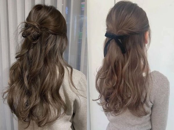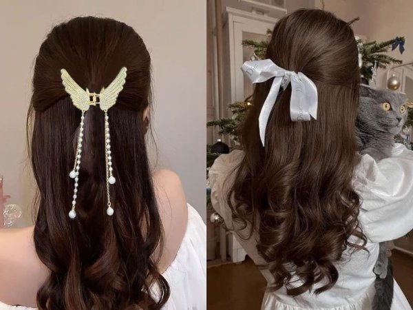 Làm tóc đi đám cưới đơn giản cho tóc dài với kiểu tóc buộc nửa đầu xinh xắn (Nguồn: VOH/janna-salons.com) Kết hợp với nơ và kẹp tóc để thêm phần nổi bật (Nguồn: SHEIN/nlpanhh)> Xem thêm: Top 7 shop bán phụ kiện tóc trên Shopee được yêu thích nhất