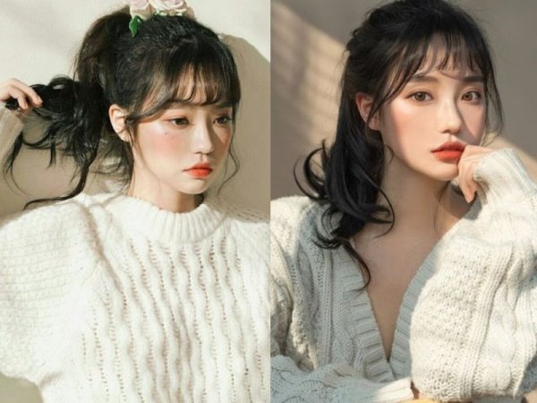 Uốn cụp đuôi tóc dài mang đến vẻ đẹp trẻ trung, tươi mới và gọn gàng (Nguồn: @phngkqun – Pinterest/ @hoanhhair – Pinterest) Tóc dài cụp đuôi Hàn Quốc làm phồng mái tóc (Nguồn: HAUM – Pinterest/ KBeauty Addiction- Pinterest)Tóc dài uốn đuôi cột cao