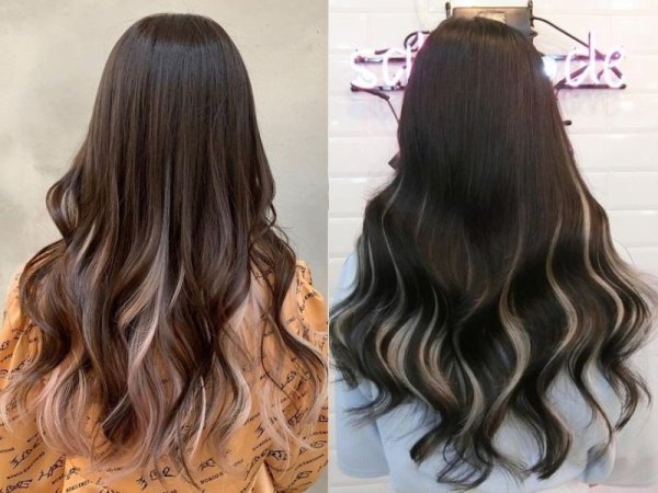 Tóc dài uốn đuôi sau đó được tạo điểm nhấn bằng các dải màu highlight tương phản với màu tóc nền giúp mái tóc của bạn mới lạ hơn nhiều. Nếu bạn đang cảm thấy khá nhàm chán và muốn mái tóc uốn xoăn mang đến vẻ đẹp trẻ trung cho mình, hãy thử cách nhuộm highlight. Kiểu nhuộm này dành cho các bạn có cá tính riêng, tự tin với diện mạo của bản thân.