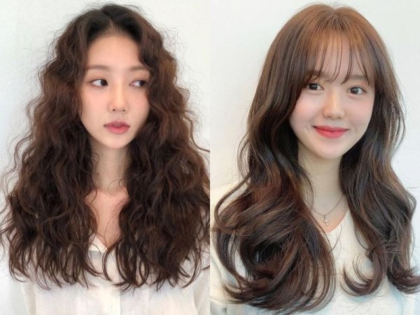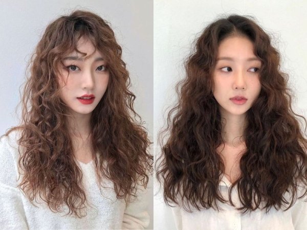 Đây là kiểu tóc đặc trưng thường thấy trong các bộ phim Hàn Quốc. Kiểu tóc xoăn vốn đã mang theo hình ảnh của sự dịu dàng, ngọt ngào, khi phối hợp với mái thưa lại khiến bạn thêm trẻ trung và thuần khiết. Tùy theo sở thích mà bạn có thể lựa chọn độ lơi của sóng tóc cũng như kích thước lọn tóc. Bên cạnh đó, bạn nên làm cong phần mái thưa để tổng thể được hài hòa hơn.