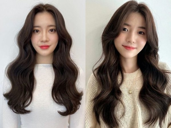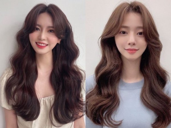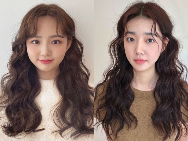 Tóc dài uốn xoăn sóng nước không kén dáng mặt (Nguồn: 요닝 hair designer 허석 – Instagram) Kiểu tóc này phù hợp với nhiều phong cách thời trang khác nhau (Nguồn: CHAHONG)Tóc dài xoăn đuôi nhẹ