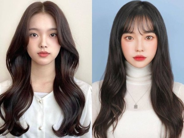 Uốn gợn bồng bềnh cho mái tóc dài sẽ giúp bạn trông thêm phần thướt tha (Nguồn: hair.cm và beauty.hotpepper.jp) Tóc dài uốn gợn sóng đặc biệt phù hợp với những bạn theo đuổi phong cách trưởng thành (Nguồn: @nhisu1212 – Pinterest)Tóc uốn gợn sóng mái bay
