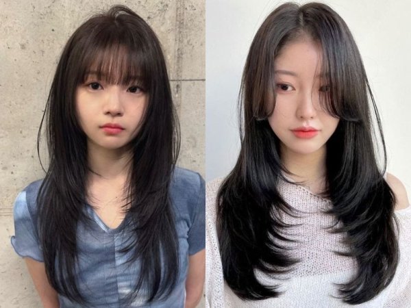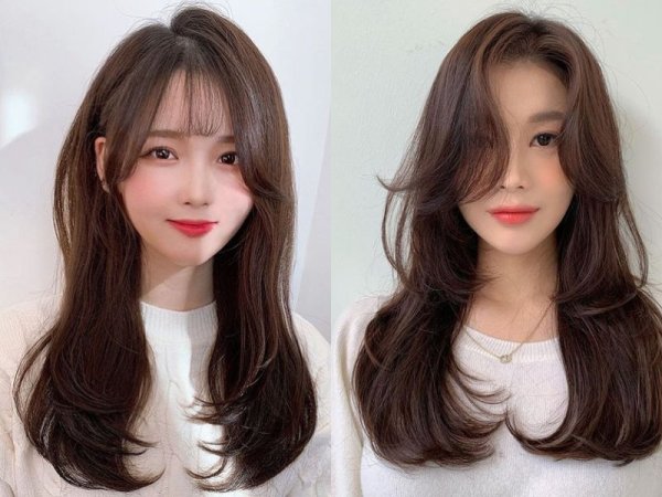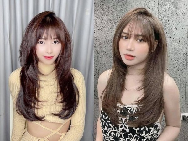 Mái thưa giúp che vầng trán cao hiệu quả (Nguồn: A KNACK, t) Các kiểu tóc layer dài có mái có khả năng hack tuổi cực tốt (Nguồn: CHAHONG)Tóc layer kết hợp mái dài
