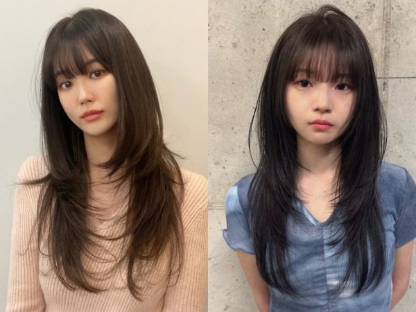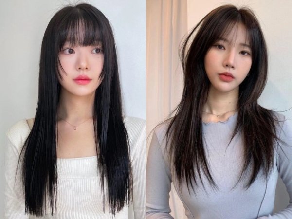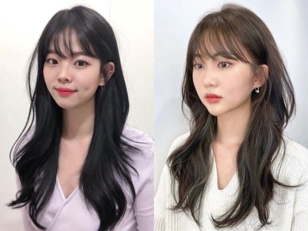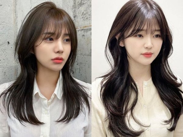 Đây là kiểu tóc dài cho các cô nàng ngại tỉa tóc mái thường xuyên (Nguồn: LOAB, CHAHONG) Kiểu tóc này không hợp với các bạn mặt dài, trán quá cao (Nguồn: NEC, PIP)> Xem thêm: 19+ kiểu tóc layer nữ mặt dài thời thượng, hack tuổi hiệu quả