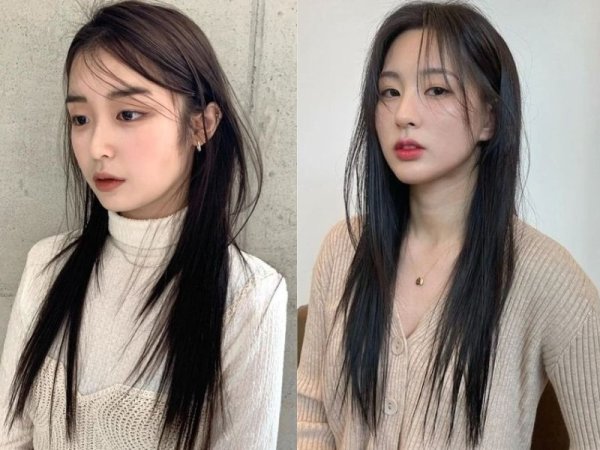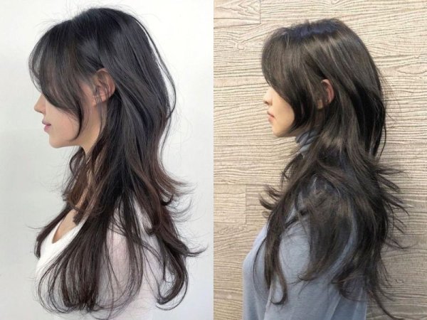 Tóc layer dài cụp cũng có tính ứng dụng cao (Nguồn: CHAHONG, HAUM) Kiểu tóc này cũng không đòi hỏi phải chăm sóc hay tạo kiểu phức tạp (Nguồn: CHAHONG, VOH – Pinterest)Tóc layer dài mái bay