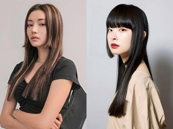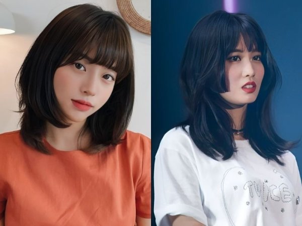 Tóc hime cho mặt vuông thêm phần cá tính (Nguồn: Fansite Afternight, Newsen) Tóc hime giúp dáng mặt vuông trở nên mềm mại và thon gọn hơn (Nguồn: TV Daily, MOMO Bar)Tóc hime cho mặt dài