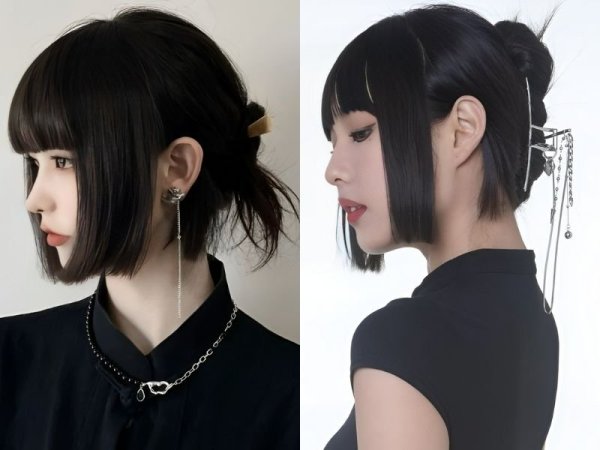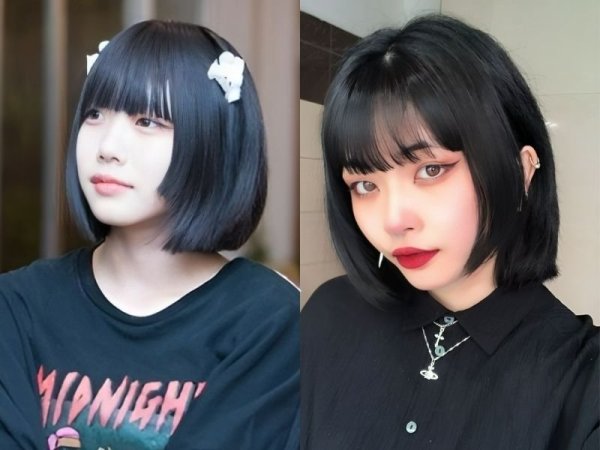 Tóc hime ngắn tôn lên đường nét nổi bật trên khuôn mặt (Nguồn: Myristica, CHAHONG Salon) Kiểu tóc giúp cô nàng che khuyết điểm khuôn mặt hiệu quả (Nguồn: K Beauty Addiction, CHAHONG Salon)Kiểu tóc hime layer ngắn