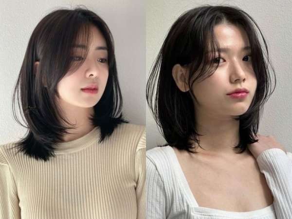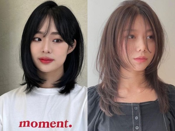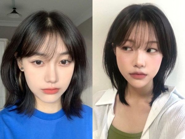 Tóc tỉa layer ngắn ngang vai hai mái sẽ cho bạn sự thời thượng quý phái của một quý cô (Nguồn: Korean style và kbeautyaddiction.com) Bạn có thể tự tin thể hiện gu thẩm mĩ với tóc layer nữ ngắn ngang vai hai mái (Nguồn: punpro.com và kbeautyaddiction.com)Tóc mullet ngắn layer Hàn Quốc