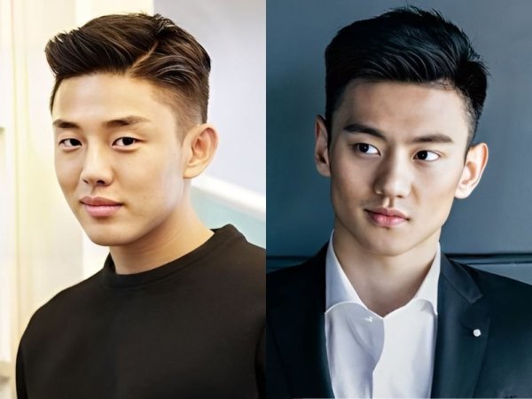 Side part rẽ 7 3 vuốt ngược (Nguồn: Koreaboo, menknow.tistory.com) Side part vuốt ngược (Nguồn: Xiao Wang)Side part 6 4 ngắn