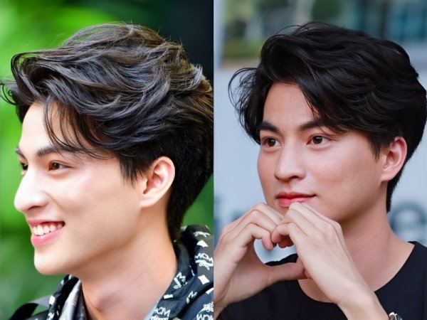 Nếu bạn thích để tóc mái, hãy thử tóc 2 mái uốn gợn sóng rẽ ngôi giữa. Kiểu tóc này hợp với các bạn nam có vầng trán cao, rộng, sống mũi thẳng và khuôn mặt dài. Cách chẻ ngôi 5/5 giúp bạn để lộ trán cao thông minh, sáng láng nhưng đồng thời cũng tiết chế độ rộng của trán để khuôn mặt trở nên cân đối, thanh tú. Thêm vào đó, những lọn tóc xoăn nhẹ không chỉ tạo nên vẻ cuốn hút và bảnh bao mà còn hạn chế tình trạng tóc bết dính, xẹp và mất nếp.