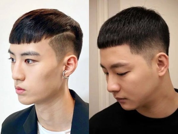 Tóc húi cua mái ngố (Nguồn: mens-talk.online. ocarafashion.com) Tóc húi cua mái ngố (Nguồn: haircutinspiration.com)Tóc húi cua Hàn Quốc