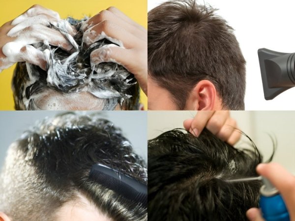 - Bước 1: Gội sạch tóc trước khi tạo kiểu để việc tạo kiểu dễ dàng hơn, với những bạn nam nhuộm màu tẩy, hãy sử dụng dầu gội tím để không làm phai màu tóc.