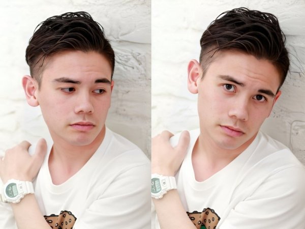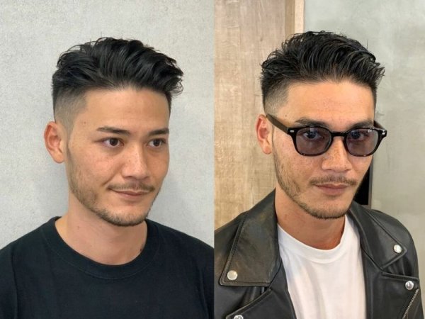 Tóc side swept quiff có phần mái vuốt dựng chéo và cạo sát hai bên gáy (Nguồn: beauty.hotpepper.jp) Kiểu tóc side swept quiff kết hợp tỉa layer giúp tóc dày hơn và tạo điểm nhấn cá tính (Nguồn: beauty.hotpepper.jp)Tóc side swept uốn gợn sóng nhẹ