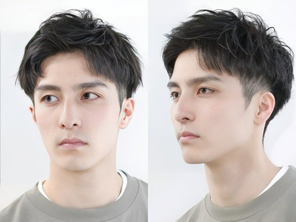 Tóc ngắn vẫn có thể để tóc 2 mái rất trẻ trung và hiện đại (Nguồn: beauty.hotpepper.jp) Phần mái cao hơn chân mày giúp chàng trẻ trung hơn (Nguồn: Nguyen Thu Uyen)Kiểu tóc 2 mái dài tỉa layer