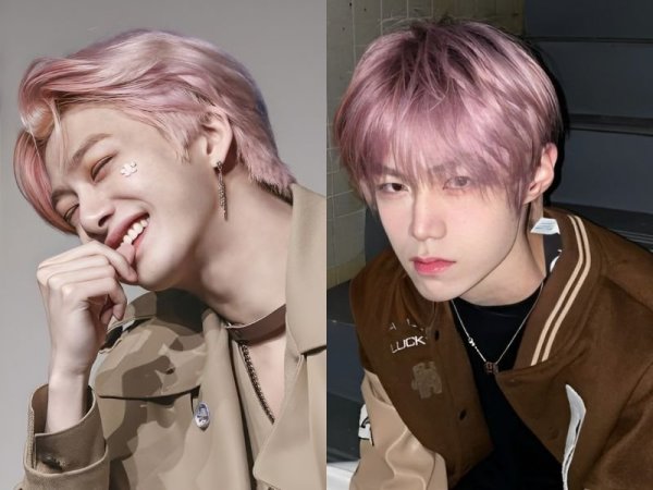 Tóc nâu khói nam ánh hồng (Nguồn: Koreaboo, Xiao Jin) Tóc nâu khói ánh hồng (Nguồn: ateez-luv.tumblr.com)Nâu khói mix tím cho nam