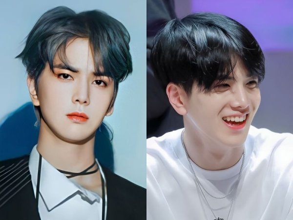Màu nâu khói ánh rêu cho nam (Nguồn: Instagram Yoon San-ha) Tóc nâu khói nam ánh rêu (Nguồn: Fandom Always with Jihnwan)Nâu khói ánh vàng nam