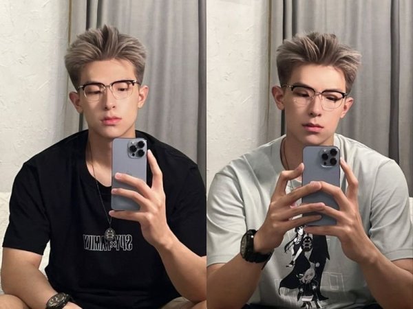 Tóc nâu khói nam ánh vàng (Nguồn: Twitter Young Hoon) Tóc nâu khói ánh vàng cho nam (Nguồn: Naver)Nâu khói ánh hồng nam