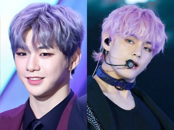 Mẫu tóc tím khói lavender mang đến sự trẻ trung pha lẫn chút “soft boy” cho các chàng trai (Nguồn: VICODIN, Jeonhoria ∞ BTS – Pinterest)Tóc màu tím khói hồng