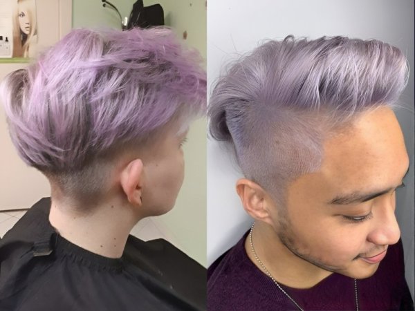 Nhuộm tím khói nhạt yêu cầu kỹ thuật vô cùng cao (Nguồn: Dyke hair) Màu tóc nam tím khói nhạt sẽ thay đổi tùy theo điều kiện ánh sáng (Nguồn: mens-club.online, Pinterest)Màu tím khói ombre