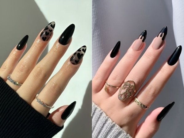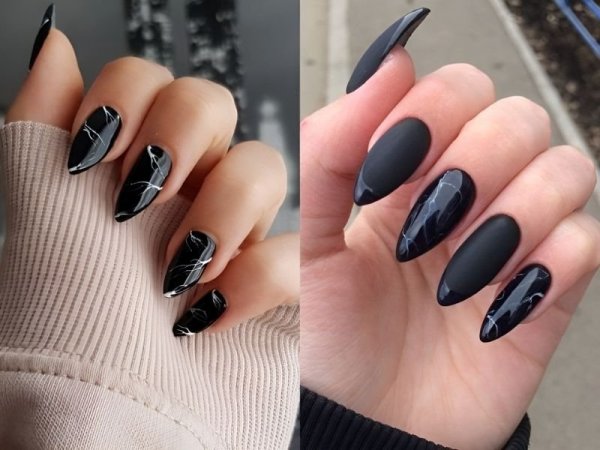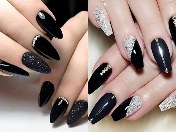 Nếu bạn yêu thích phong cách sang trọng, quyến rũ thì hãy thử ngay cho mình mẫu nail móng dài màu đen nhé. Màu nail này phù hợp với mọi tông da, từ da ngăm, da trung bình đến da sáng. Bạn có thể lựa chọn kiểu sơn bóng hoặc sơn lì, ngoài ra việc kết hợp với đính đá, vẽ họa tiết, mix nhũ sẽ giúp bộ nail của bạn trở nên long lanh và đẹp mắt hơn.