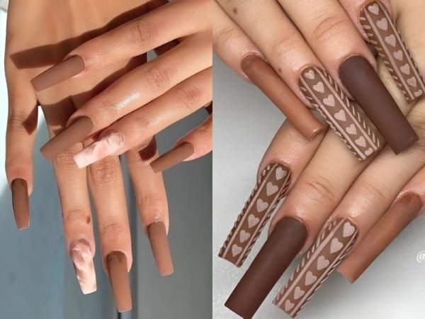Nail màu nâu móng dài là mẫu nail đang rất thịnh hành trong những năm gần đây. Sắc nâu không chỉ giúp tôn da tay trắng sáng hơn mà còn mang đến vẻ sang trọng, đầy cuốn hút. Nail màu nâu thường phù hợp với tạo kiểu đơn giản, thanh lịch, bạn có thể kéo léo phối nhiều sắc độ nâu với nhau hoặc mix với các tông màu sáng như nude, trắng, sữa,… là đã đủ để tạo nên một bộ nail hài hòa, đẹp mắt.