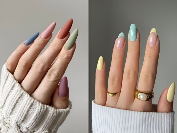 Nếu bạn đang tìm kiếm một mẫu nail trẻ trung, nhẹ nhàng thì hãy thử ngay cho mình nail móng dài màu pastel. Các tông màu pastel tươi sáng như hồng nhạt, xanh, vàng,… khi được mix khéo léo với nhau sẽ tạo nên tổng thể đẹp mắt, chỉ cần sơn gel trơn hoặc kết hợp vẽ họa tiết đơn giản là bạn đã có ngay bộ móng phù hợp để đi làm, đi chơi hàng ngày.