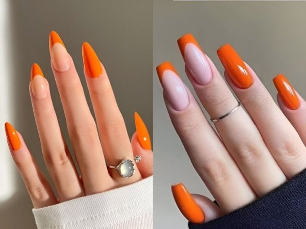 Nail móng dài tông cam là mẫu nail trẻ trung, nổi bật mà bạn không nên bỏ qua. Sắc cam tươi tắn rất phù hợp để bạn diện vào mùa hè hoặc các dịp lễ hội, tiệc tùng sôi động. Tuy nhiên, mẫu nail thường gây xỉn màu da, do đó những bạn da ngăm nên cân nhắc trước khi thử nghiệm màu sắc này nhé.