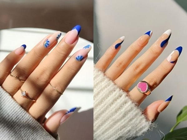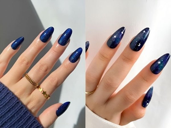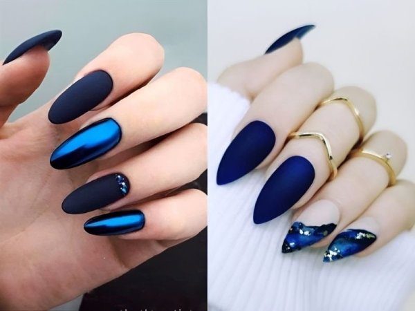 Nail móng dài màu xanh dương là mẫu nail tông lạnh có khả năng tôn da cực tốt. Nếu e ngại màu sơn này hơi dừ thì bạn có thể khéo léo kết hợp điểm xuyến, vẽ họa tiết cùng các tông màu tươi sáng khác như trắng, nude,… Ngược lại, nếu theo đuổi phong cách sang trọng, quyền lực thì màu nail xanh dương lì, trơn kết hợp cùng một chút ánh nhũ sẽ là kiểu móng lý tưởng dành cho bạn.