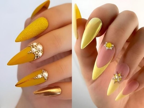 Nail móng dài tông vàng là mẫu nail phù hợp với những cô nàng yêu thích phong cách cá tính, nổi bật. Sắc vàng rực rỡ sẽ khiến bàn tay của bạn trở nên đẹp mắt, cuốn hút hơn bao giờ hết. Khi đến các buổi tiệc hoặc sự kiện quan trọng, bạn có thể kết hợp đính đá, ngọc trai để tổng thể được sang trọng và ấn tượng hơn. Ngược lại, nếu chỉ đi làm, đi chơi thường ngày thì một bộ nail màu vàng trơn hoặc vẽ họa tiết đơn giản cũng đủ để bạn trở nên thật nổi bật, cá tính.