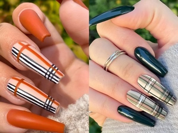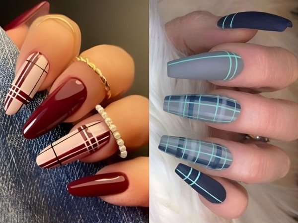 Mẫu nail dài họa tiết kẻ sọc hiện đại (Nguồn: kaynuli.com) Những mẫu nail họa tiết kẻ cho móng dài (Nguồn: medium.com) Nail họa tiết đơn giản cho móng dài (Nguồn: inspired-beauty.com)Mẫu nail họa tiết vân đá sang trọng cho móng dài